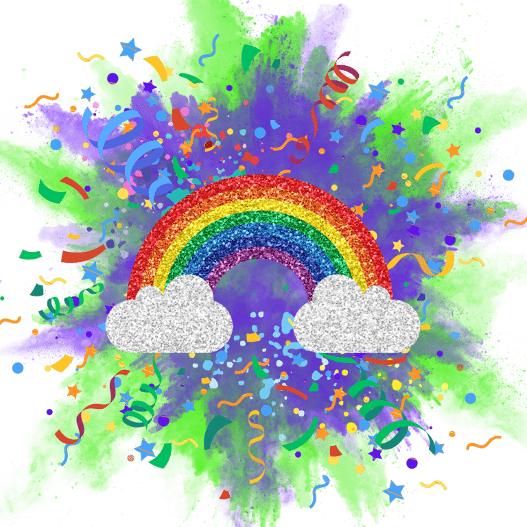 En fargerik og leken bursdag fylt med regnbueglede! Barna maler sin egen regnbue, lager en uro til vinduet og danser i sĂ„pebobledisco â med mulighet for ekstra moro med slimverksted.