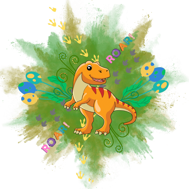 En spennende og kreativ dinosaurbursdag! Barna lager sine egne dinosauregg, drar pÄ jakt etter dinosaurer rundt i rommet, og lager slim med sand for ekte dinosaurusfÞlelse.
