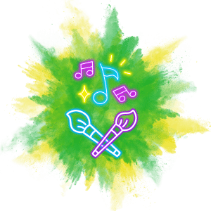 En lysende og kreativ bursdag full av neonmaling, UV-lys og musikk! Barna fÄr dekorere t-skjorter og totebags mens de leker og danser i et fargerikt univers.